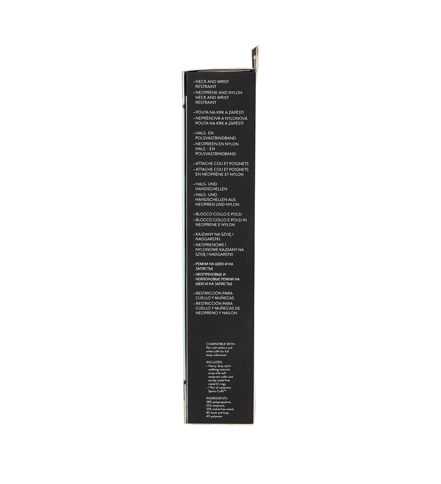 - Includes: Heavy duty nylon webbing restraint strap with soft neoprene collar and sturdy nickel free metal D-rings, 1 pair of neoprene Sports Cuffs