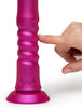 ROMP Jiggle is a sleek thrusting vibrator in a playful cosmic pink that turns any surface into a pleasure zone. Its strong suction base lets you experience deep thrusts and wild sensations. Zero hands required. Buckle up and enjoy the ride!